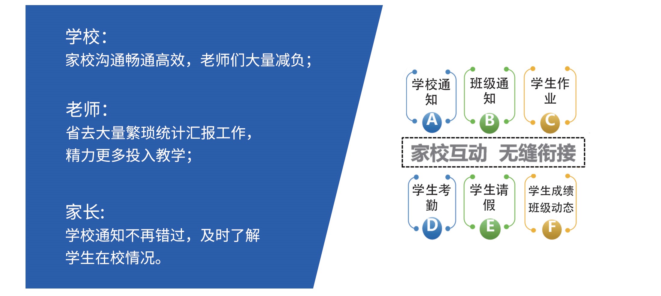 基本功能:学生考勤管理功能,支持数据的导出功能;时间管理,可根据学校的规章制度设置校园的进出时间;请销假功能;学生入、离校短信通知功能;家校互通功能。