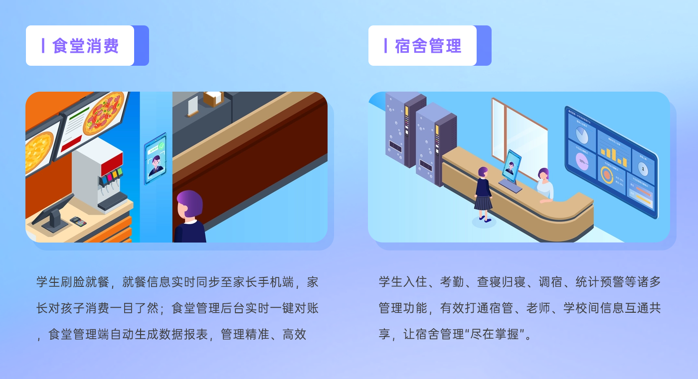 食堂消费支持CAN、TCP多种传输方式;支持自由金额、定值金额、菜品编码等多种消费模式,切换方式;支持多餐次;支持日消费限额、餐次消费限额、身份限额数据自动实时上传、下发;支持信息查询功能,可实时查询个人消费情况、商户营业情况、整体营业汇总、账户结余汇总等支持消…